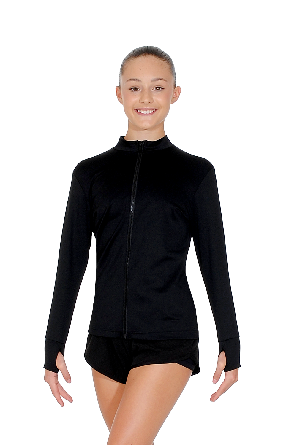 Slim fit stretch zipped jacket. Funnel neck, pockets & thumb hole sleeve for a sleek look. Ideal for printing/embroidery.