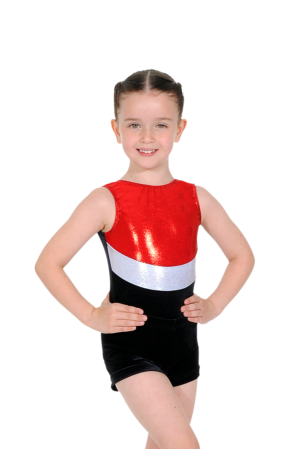 Ärmelloser Rio-Gymnastikanzug aus Velours und glänzendem Nylon/Lycra.